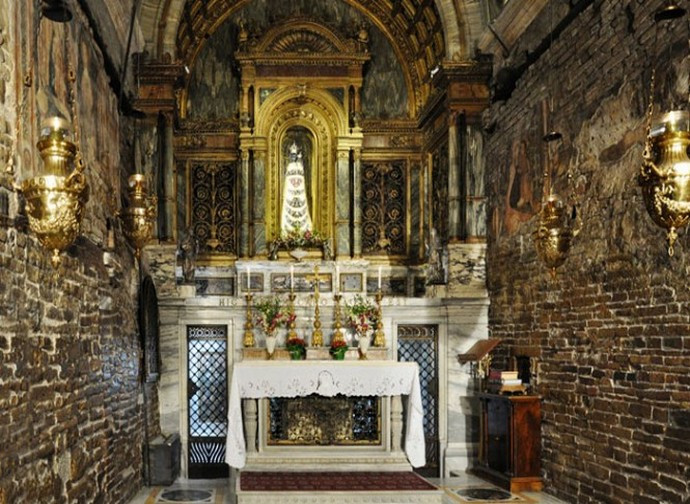 Among the most recent research is that of Father Bellarmino Bagatti, one of the most important archaeologists of the 20th century, of Nereo Alfieri, also a famous archaeologist, and of Nanni Monelli (La Santa Casa a Loreto, La Santa Casa a Nazareth), an architect and engineer. First of all, in its original core, the house consists of only three walls because it was set up against a cave with which it constituted a single housing unit. The measurements of the house of Loreto and the thickness of its walls correspond perfectly to the foundations that are found in Nazareth, in the place that for thirteen centuries has been venerated by the faithful as the house of Mary. The stones of the Holy House are typical of Palestine and worked with a technique specific to those places; to this it must be added that in the Marche there were no stone quarries and all the buildings were made of bricks, not to mention that the location of the door on the long wall and the orientation of the entire house are anomalies in terms of the construction practices of the time in the Marche region.