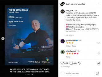 The protagonist of this controversy is Father Guilherme (born Guilherme Peixoto), a Portuguese Catholic priest who emerged from anonymity at the 2023 World Youth Day in Lisbon when he performed as a DJ during a vigil with Pope Francis. According to reports, after his exploits in Lisbon, the 'DJ priest' began performing for young and very young audiences, intending to bring them closer to God through techno-house music. Thanks to the Maronite priests at the University of the Holy Spirit in Beirut, Father Guilherme was invited to celebrate an open Holy Mass on the university campus on Saturday 10 January.