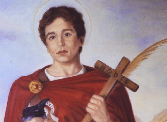 But the saint answered decisively: "I will be a Christian today!". This is why he is depicted in various icons in the act of trampling on a crow crying cras ("tomorrow", in Latin), while in one hand he holds a cross bearing the word hodie ("today") and in the other the palm of his martyrdom, which presumably took place by decapitation around 303.