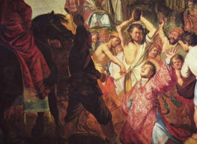 While the Christian community of Jerusalem continued to grow and Stephen performed miracles and spoke with an "inspired wisdom" which no detractor could counter, the envy that arose in the synagogue of the Freedmen (descendants of the Palestinian Jews, enslaved by Pompey in 63 BC) urged the latter to stir up the people, the elderly and the scribes, dragging Stephen before the Sanhedrin, where he was accused of blasphemy by false witnesses in the presence of the high priest. It was then that Stephen, his face "like that of an angel", began a speech, the longest in the whole Acts, in which he reconstructed the history of salvation from Abraham to the prophet Isaiah, going through the twelve patriarchs, to finally exhorting his accusers to convert to Christ: «You stubborn people, with uncircumcised hearts and ears. You are always resisting the Holy Spirit, just as your ancestors used to do. Can you name a single prophet your ancestors never persecuted? They killed those who foretold the coming of the Upright One, and now you have become his betrayers, his murderers. In spite of being given the Law through angels, you have not kept it.'"