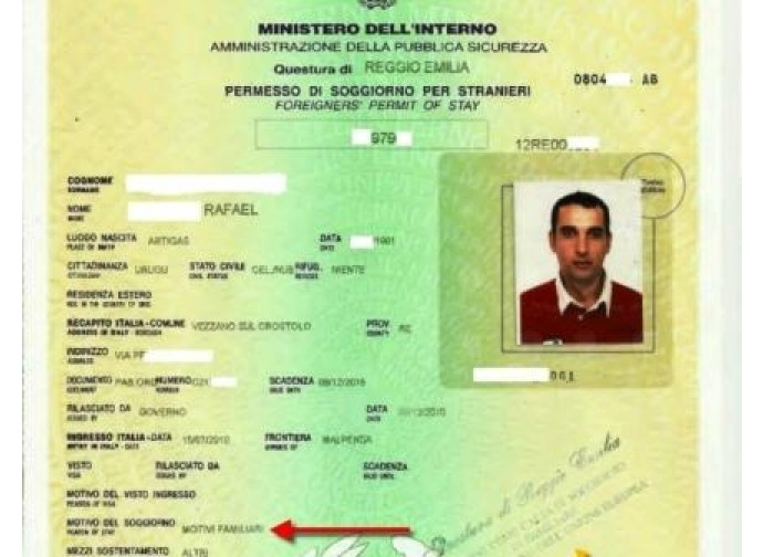 Il permesso di soggiorno è comune a tanti altri. Comune alle migliaia di carte che vengono concesse nel nostro Paese per favorire il ricongiungimento di due coniugi extracomunitari, spesso il marito che è venuto in Italia a cercare fortuna, lasciando a casa la moglie e i figli.