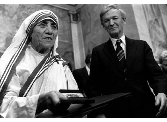 A 35 anni dal giorno in cui fu pronunciato, riproponiamo integralmente il discorso della Beata Madre Teresa di Calcutta per l'accettazione del Premio Nobel per la pace. È un discorso che rimane di una attualità sorprendente, nell'indicare l'anorto come la principale minaccia alla pace, e anzi è anche profetico rispetto al destino della nostra società. Ma è un discorso importante anche per un altro motivo, di metodo. Davanti a un consesso laico, anzi laicista, interessato soltanto alla sua opera per i poveri, Madre Teresa con grande semplicità e con grande autorevolezza ha parlato di Cristo. Rileggendo queste parole si comprende cosa significhi testimoniare la fede in qualsiasi circostanza, un abisso rispetto ai tanti prelati e teologi odierni che si preoccupano soltanto di parlare il linguaggio del mondo. Una grande lezione da riscoprire e imparare, perché il rinnovamento della Chiesa può nascere solo da questa santità vissuta.