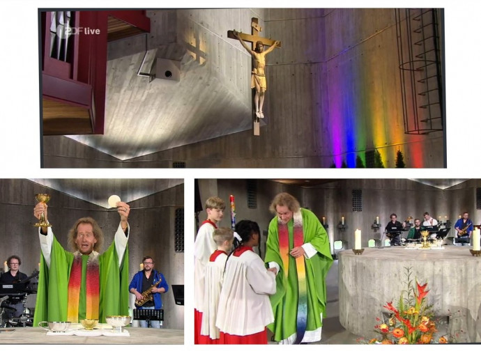 Domenica 26 ottobre la televisione pubblica tedesca ZDF ha trasmesso come di consueto la messa domenicale. Questa volta le telecamere sono entrate nella chiesa di Sant'Anna a Mecklenbeck. La santa messa è stata celebrata da Padre Karsten Weidisch, che indossava paramenti arcobaleno, con l’ausilio della Queergemeinde (Comunità Queer), il "ministero LGBT" ufficiale della diocesi di Münster. Insomma una messa LGBT con tanto di luci e cero arcobaleno e musica rock.