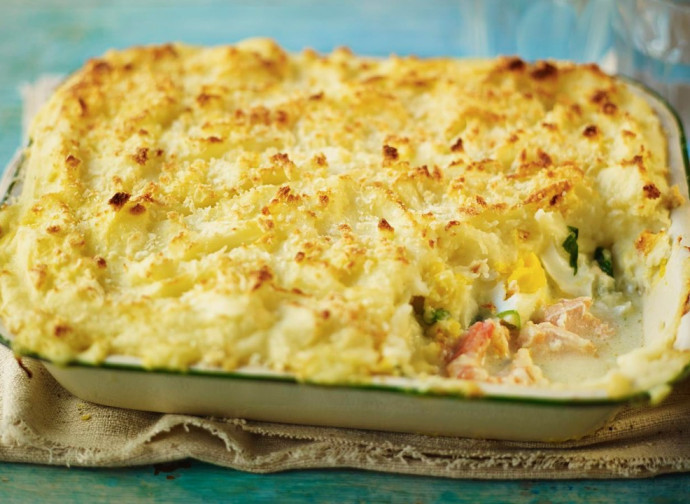 Una variante (secondo il gusto) prevede formaggio grattugiato sparso in superficie 10 minuti prima della fine della cottura: si formerà una crosticina dorata e croccante sulla crostata di pesce. (Liana Marabini)