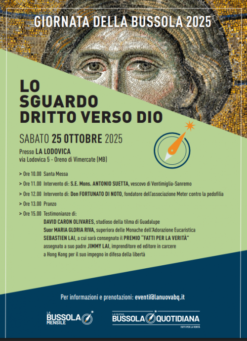 L'istituzione del Premio "Fatti per la Verità", il luogo di svolgimento che si sposta alle porte di Monza, la prenotazione online (clicca qui per iscriverti), sono le principali novità della Giornata della Bussola che si svolgerà il 25 ottobre. Ospiti: monsignor Antonio Suetta, don Fortunato Di Noto, suor Gloria Riva, David Caron Olivares, Sebastien Lai.