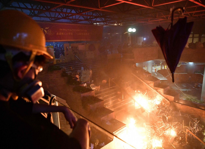 Dopo il primo morto all’inizio di novembre, in circostanze misteriose, e uno studente disarmato colpito a bruciapelo da un agente la settimana scorsa, si è passati molto in fretta dalle manifestazioni alla guerriglia urbana. L’ultimo episodio, in ordine di tempo, è l’occupazione del Politecnico di Hong Kong (PolyU) da parte di studenti e cittadini comuni che aderiscono alla protesta. Una settimana dopo l’assedio della polizia è degenerato in battaglia, con fitti lanci di molotov e uso di armi improprie, fra cui archi e gigantesche fionde artigianali. La polizia minaccia di rispondere con metodi militari, dunque usando proiettili veri.