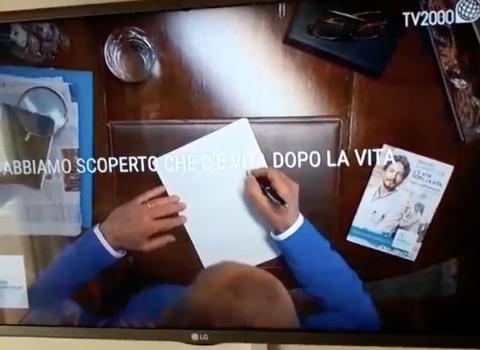 La tv dei vescovi diffonde lo spot della Fondazione Veronesi sulla campagna lasciti testamentari, in cui si presenta un'idea di vita dopo la vita incompatibile con la dottrina. Un messaggio scientista in cui la ricerca scientifica è in grado di dare tutte le risposte alle domande dell'uomo. Proteste sui social.