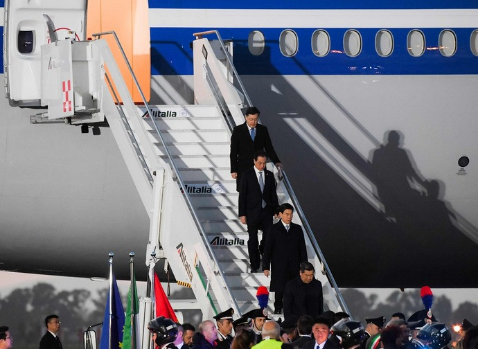 Xi Jinping è atterrato all'aeroporto di Fiumicino nel pomeriggio del 21 marzo per l'attesa tre giorni in terra italiana.
