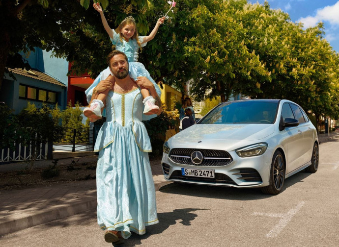 Una pubblicità della Mercedes mostra un papà barbuto che tiene a cavalcioni sul collo una bambina. Lo slogan: «Justify nothing».