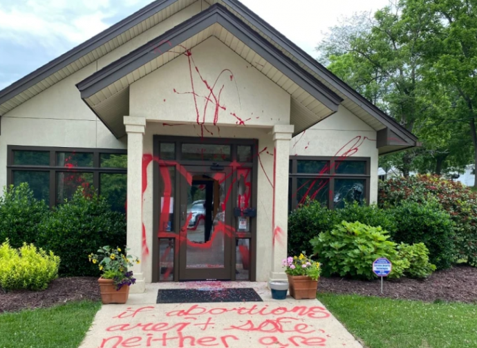 Lo scorso 3 giugno il Capitol Hill Crisis Pregnancy Center, centro cattolico di aiuto alla vita, a Washington, è stato completamente vandalizzato con vernice, uova, scritte. Il marchio dei terroristi è sempre “Jane Says Revenge” (o frasi simili). Domenica 5 giugno, un gruppo di 15 attiviste pro-aborto del gruppo Rise Up 4 Abortion Rights hanno interrotto il sermone del predicatore Joel Osteen alla Lakewood Church di Houston, una mega chiesa protestante con migliaia di posti a sedere, spogliandosi fino agli indumenti intimi e gridando imprecazioni e slogan pro aborto prima di essere scortate fuori dall’edificio. Il 7 giugno, è stato attaccato il CompassCare, centro di gravidanza di un gruppo pro life, a Buffalo, dove i vandali hanno rotto le finestre e dato fuoco, lanciando bombe molotov, allo studio medico della struttura, aggiungendo graffiti con la scritta “Jane Was Here”, una frase usata dal gruppo Jane’s Revenge che ha rivendicato la responsabilità di attacchi simili a livello nazionale. Lo stesso giorno il Mountain Area Pregnancy Services di Asheville, nella Carolina del Nord, è stato ricoperto di vernice rossa, minacce e graffiti a favore dell’aborto.